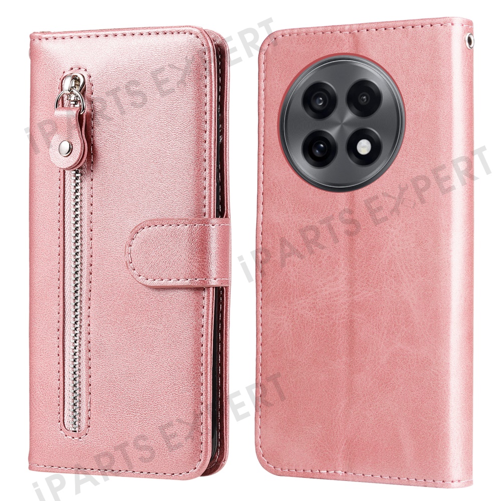 For OnePlus 13R 5G / Ace 5 5G / Ace 5 Pro 5G Case Zipper Wallet Calf Texture PU Leather Phone Cover - Pink