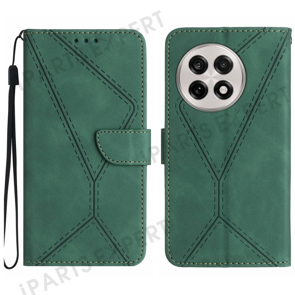 For OnePlus 13R 5G Case Skin Touch Lines Imprinted PU Leather Flip Phone Cover - Green