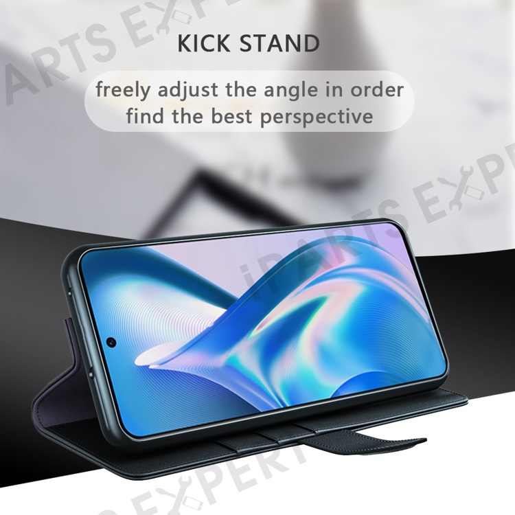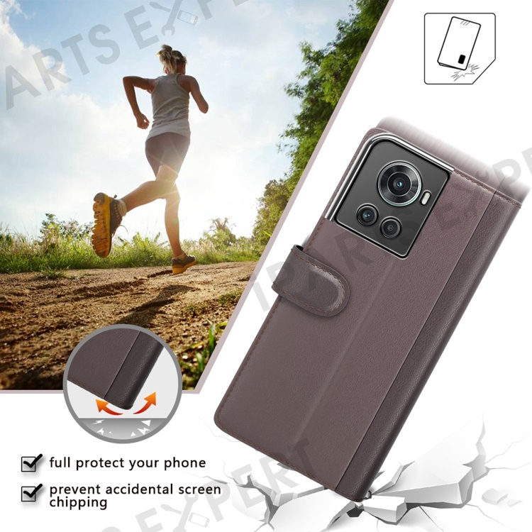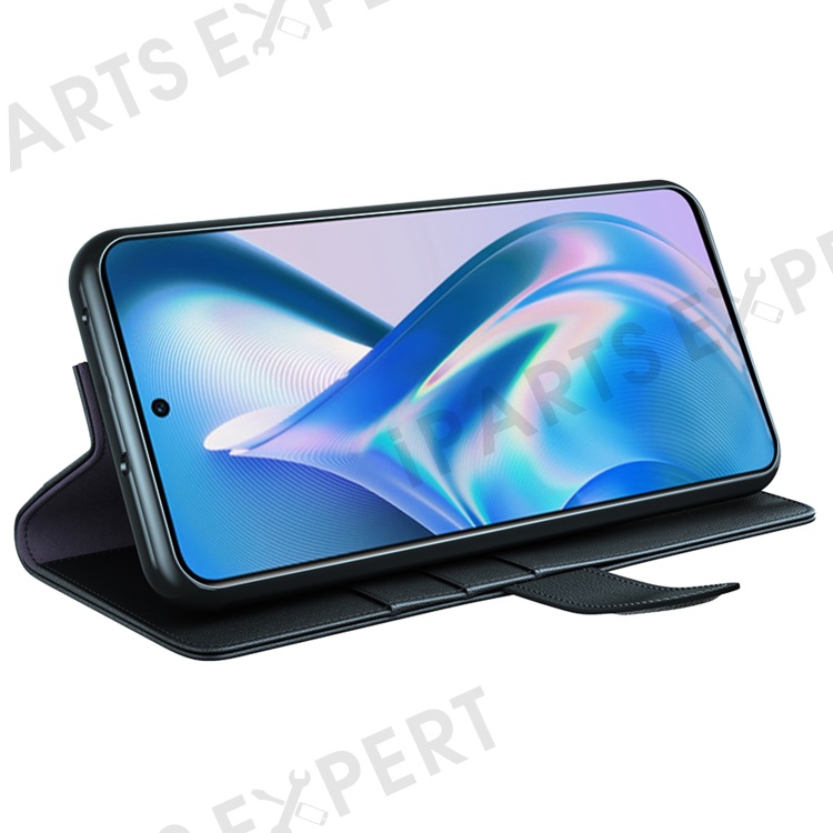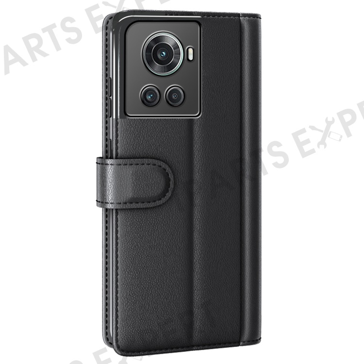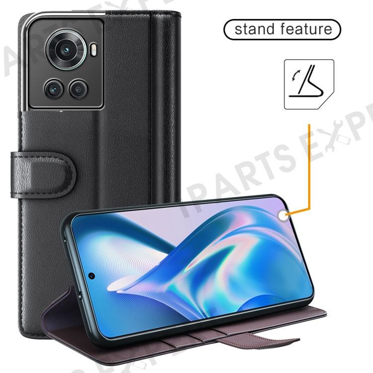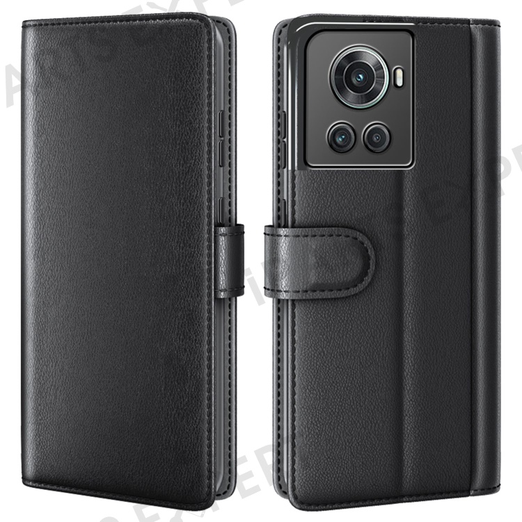For OnePlus Ace 5G/10R 5G Genuine Split Leather Flip Case Viewing Stand Secure Magnetic Buckle Protect Wallet Phone Cover - Black