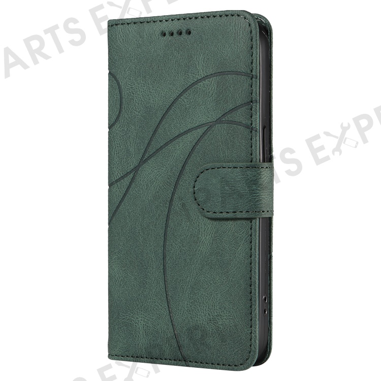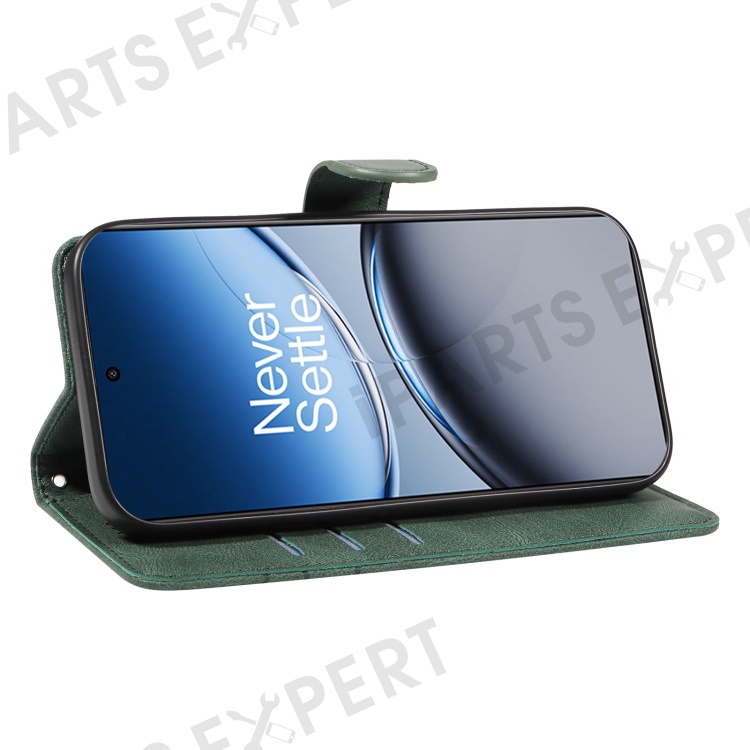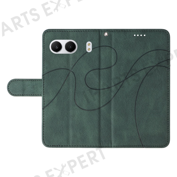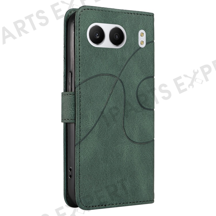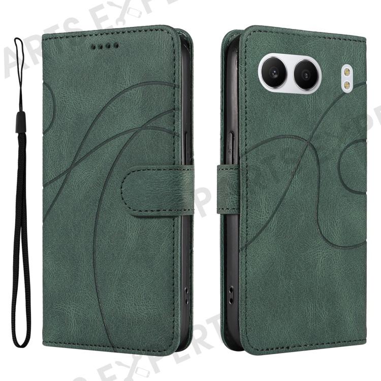 For OnePlus Nord 4 Case Stand Wallet Leather Phone Cover Curved Line Wrist Strap - Green