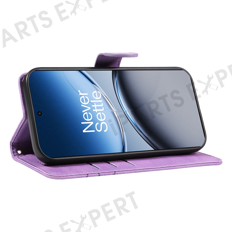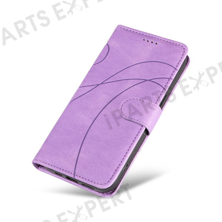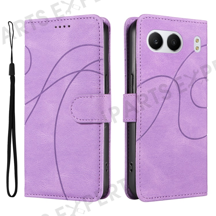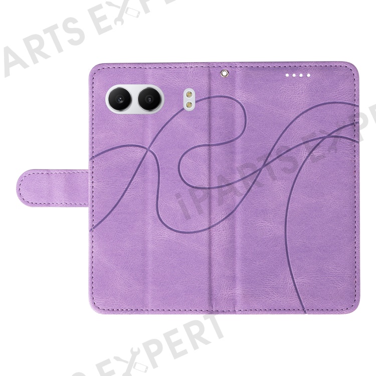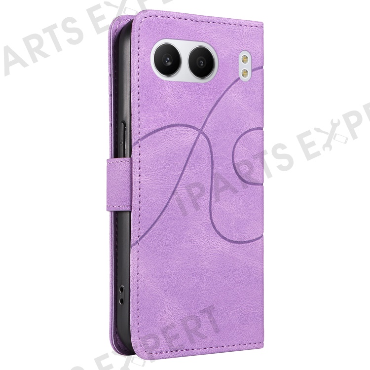 For OnePlus Nord 4 Case Stand Wallet Leather Phone Cover Curved Line Wrist Strap - Purple