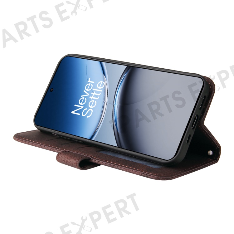 For OnePlus Nord 4 Leather Wallet Cases Skin Touch Phone Cover Stand with Strap - Brown
