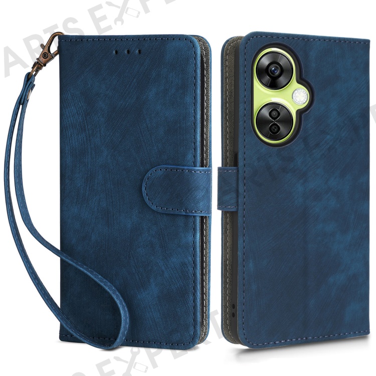 For OnePlus Nord CE 3 Lite 5G / Nord N30 5G Phone Stand Case PU Leather RFID Blocking Wallet Cover with Strap - Blue