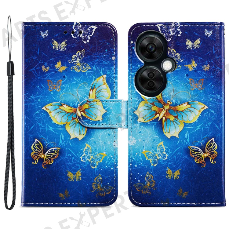 For OnePlus Nord CE 3 Lite 5G / Nord N30 5G Pattern Printing PU Leather Phone Case Stand Wallet Flip Protective Cover - Golden Butterfly