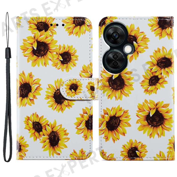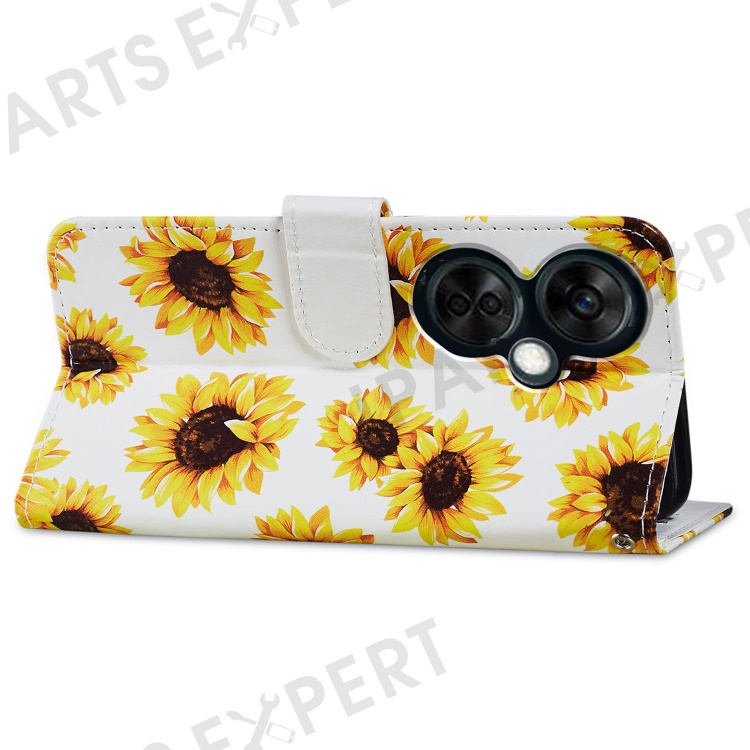For OnePlus Nord CE 3 Lite 5G / Nord N30 5G Pattern Printing PU Leather Phone Case Stand Wallet Flip Protective Cover - Sunflower