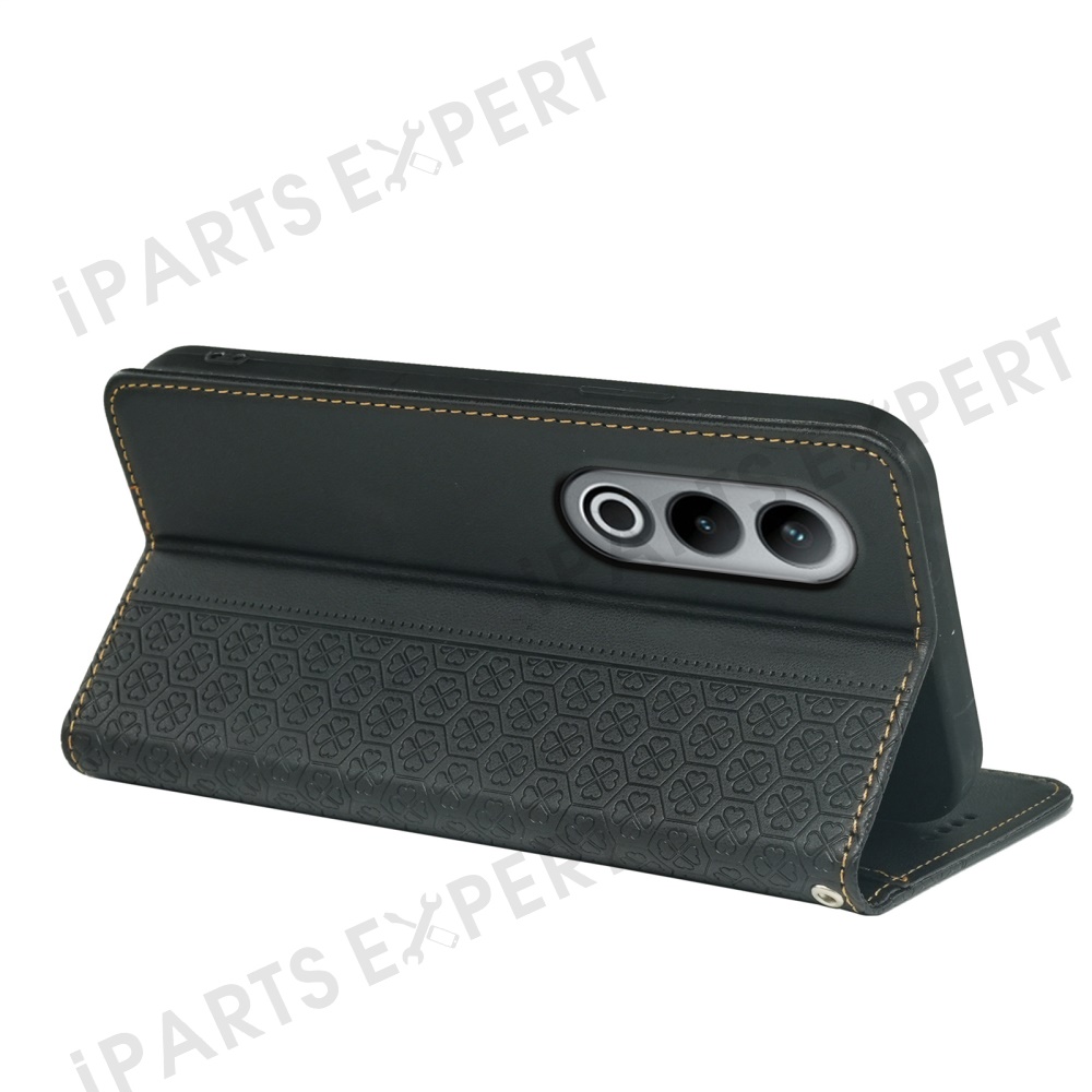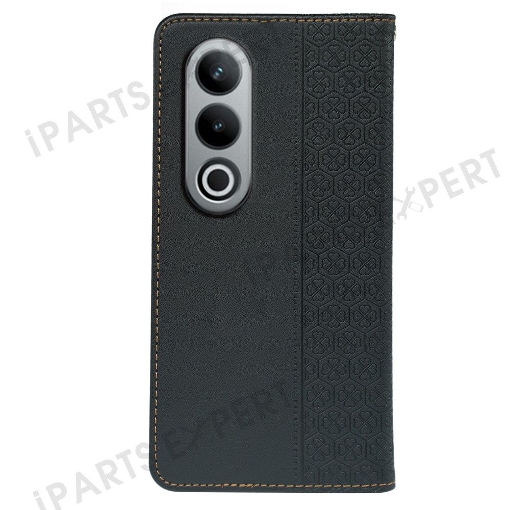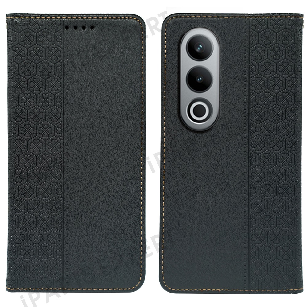 For OnePlus Nord CE4 5G Case Four Leaf Clover Leather Flip Phone Cover Stand Wallet - Black