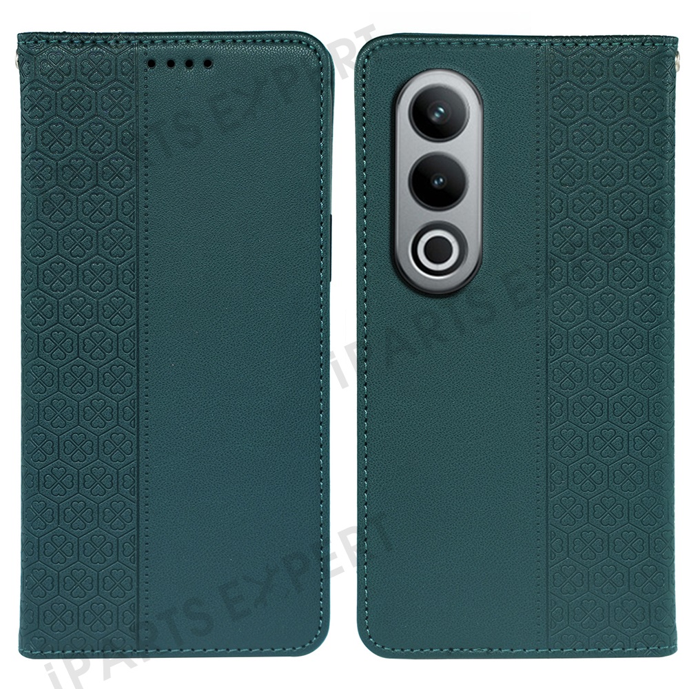 For OnePlus Nord CE4 5G Case Four Leaf Clover Leather Flip Phone Cover Stand Wallet - Green