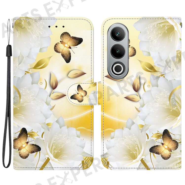 For OnePlus Nord CE4 5G Case PU Leather Pattern Printing Full Protection Cover - Gold Butterfly Flower