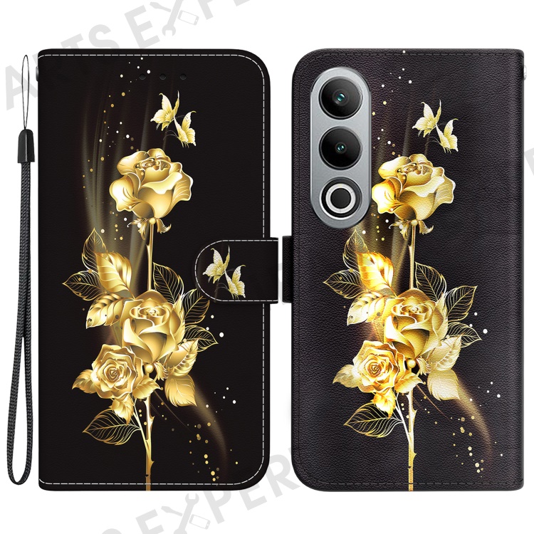 For OnePlus Nord CE4 5G Case PU Leather Pattern Printing Full Protection Cover - Gold Butterfly Rose
