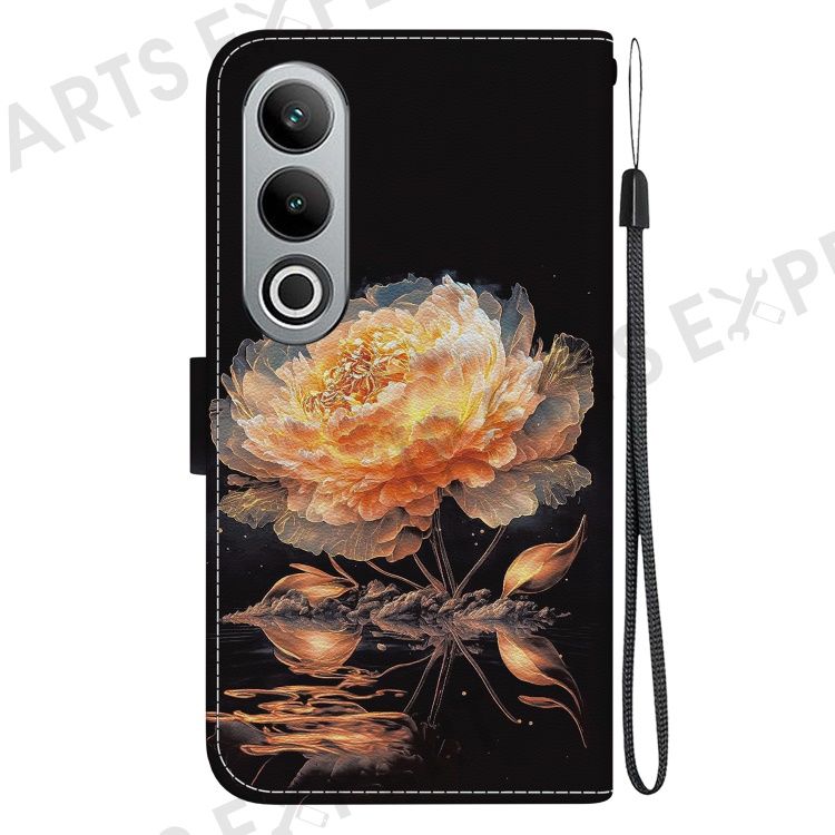 For OnePlus Nord CE4 5G Case PU Leather Pattern Printing Full Protection Cover - Gold Peony
