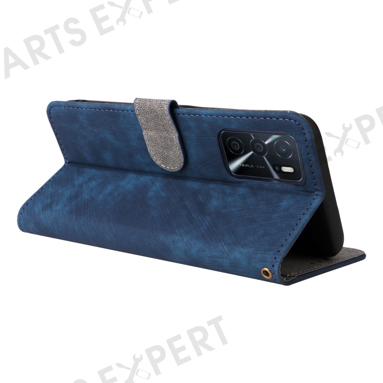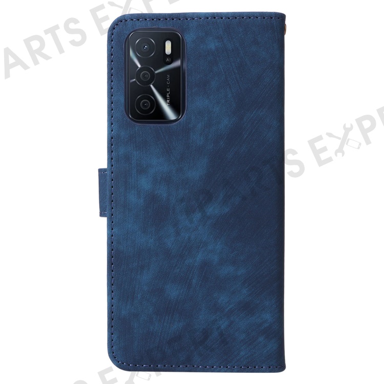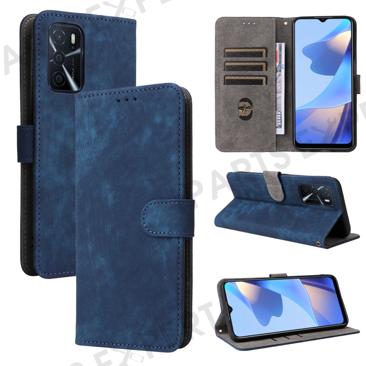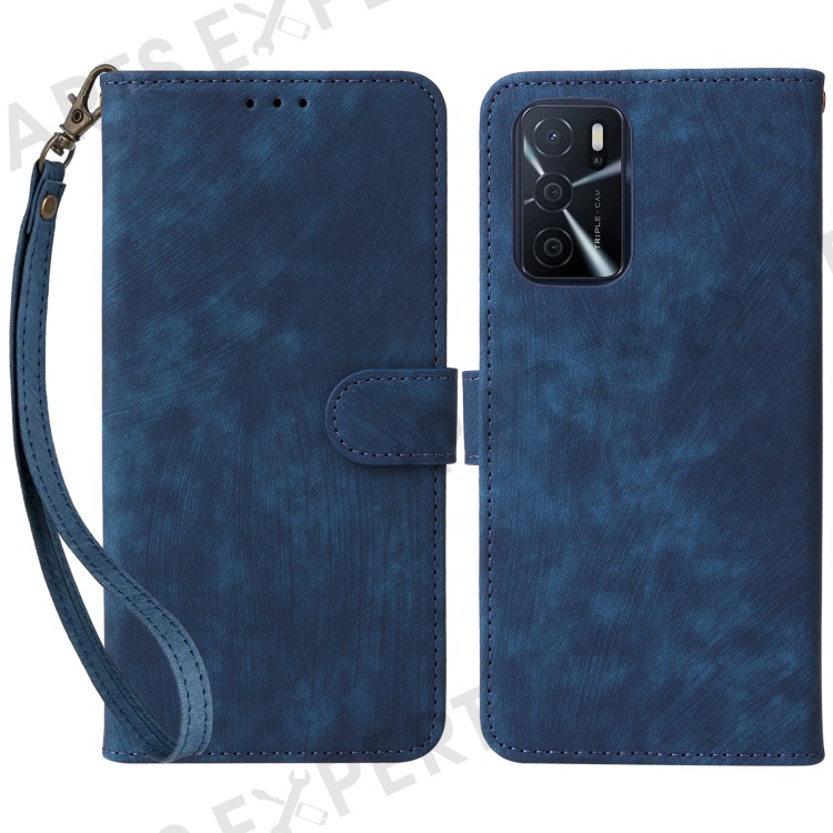 For Oppo A16 / A16s / A54 4G / A55 / A55 5G / A53s 5G / A54s Stand Phone Cover RFID Blocking Wallet Leather Case with Strap - Blue