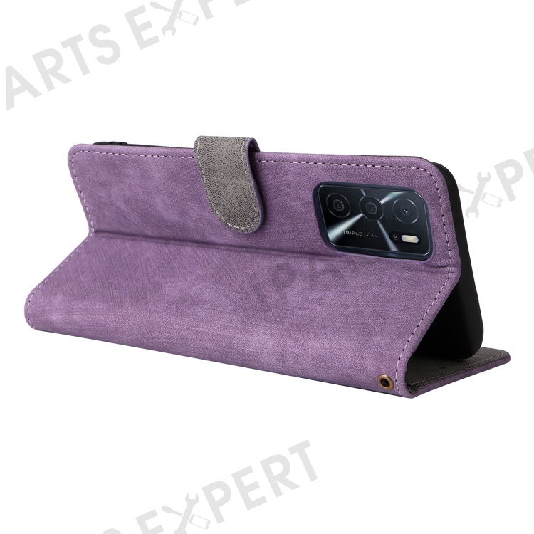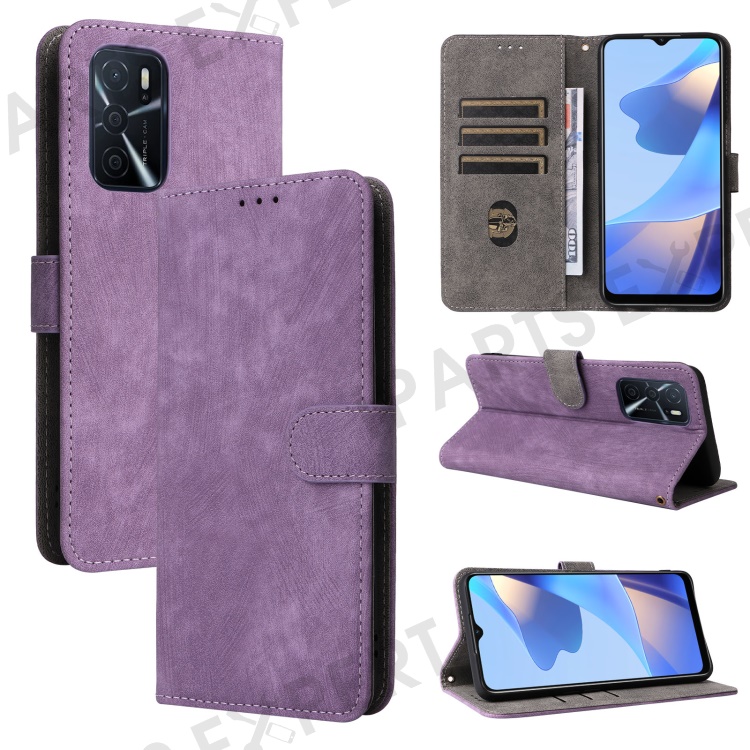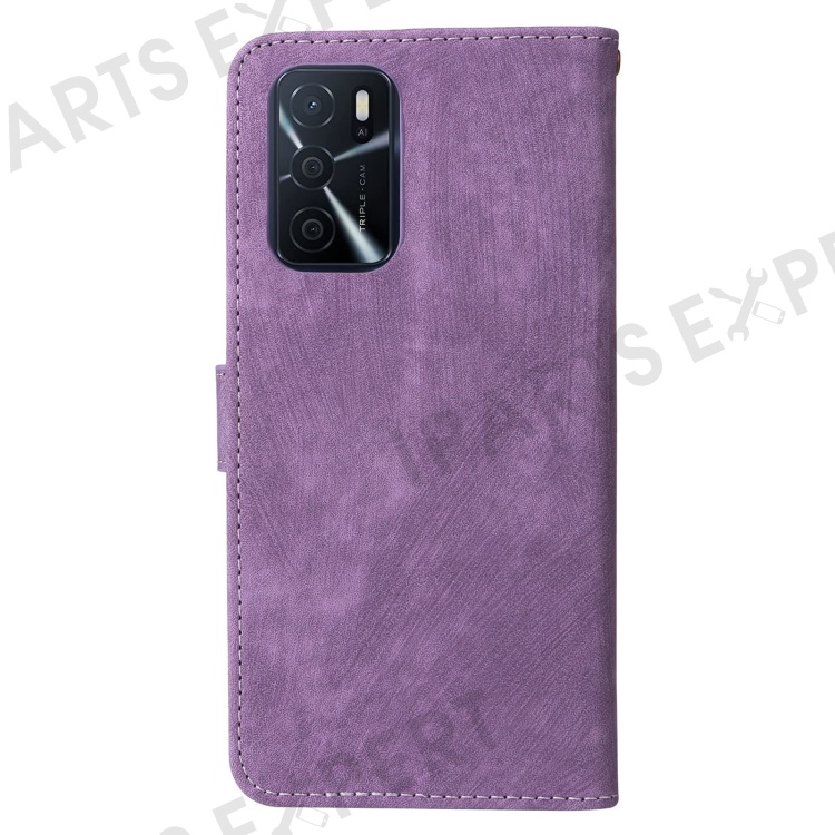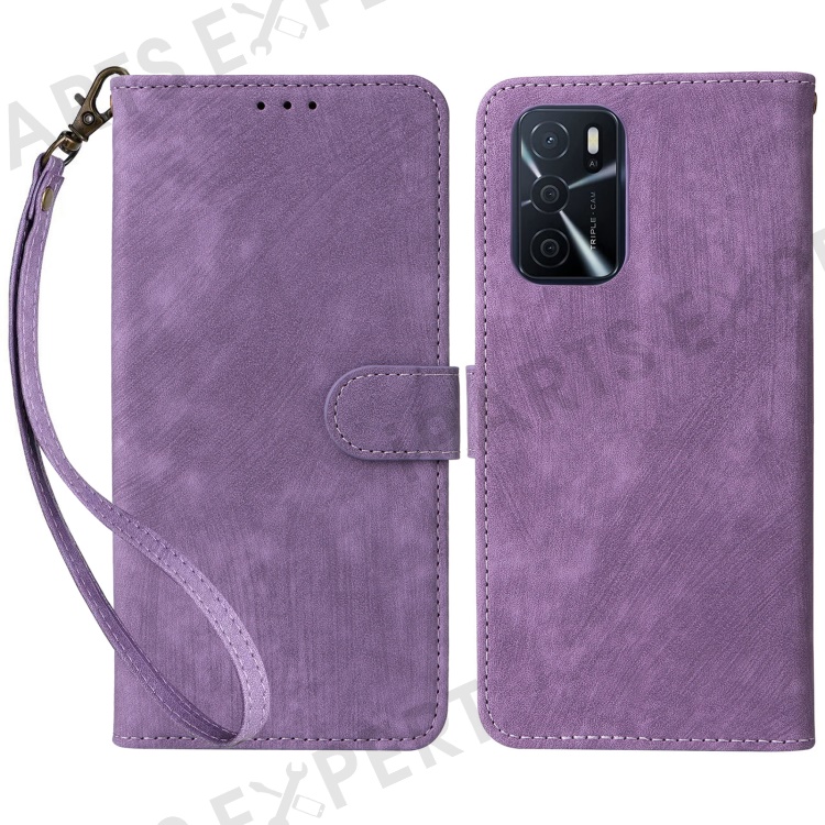 For Oppo A16 / A16s / A54 4G / A55 / A55 5G / A53s 5G / A54s Stand Phone Cover RFID Blocking Wallet Leather Case with Strap - Purple