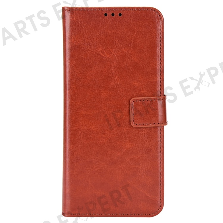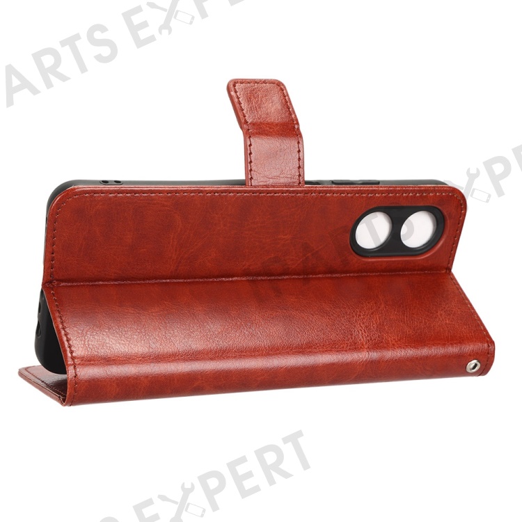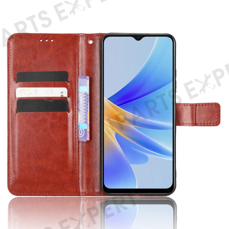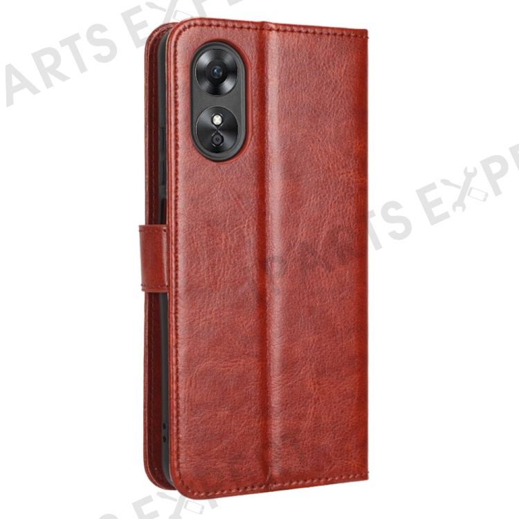 For Oppo A17 4G Crazy Horse Texture PU Leather Phone Case Full Protection Magnetic Clasp Cover with Stand Wallet - Brown