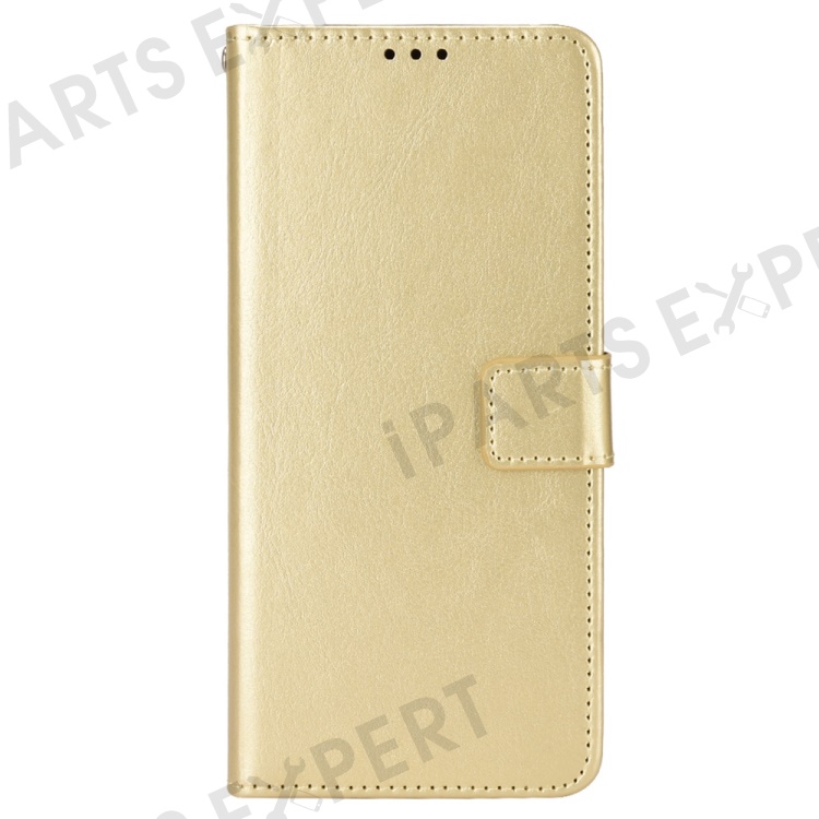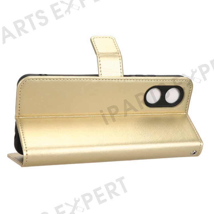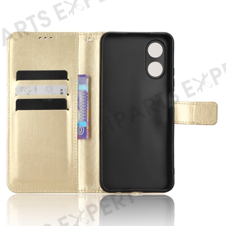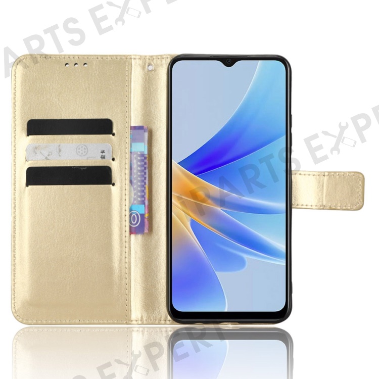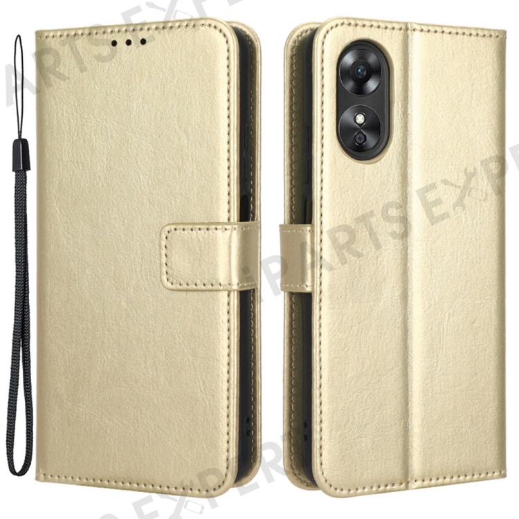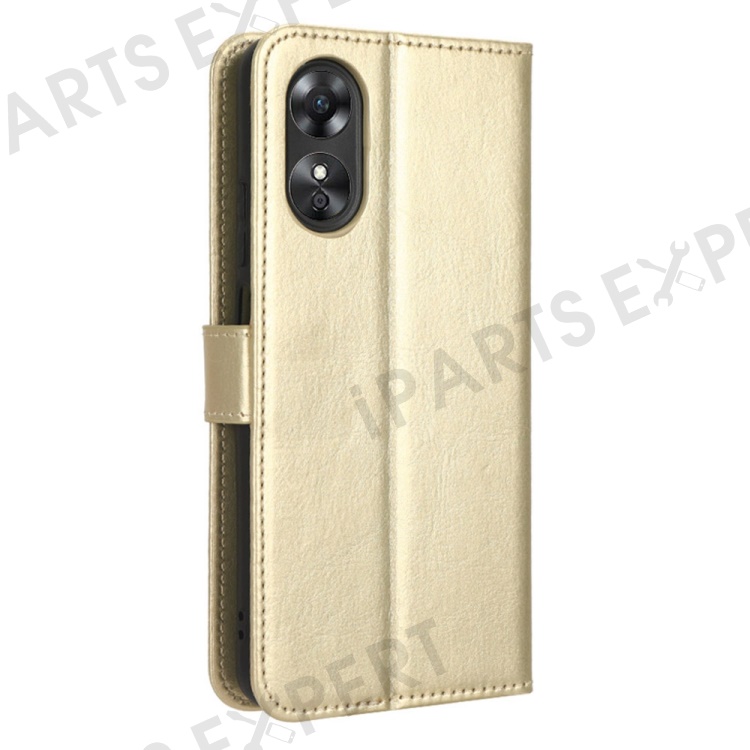 For Oppo A17 4G Crazy Horse Texture PU Leather Phone Case Full Protection Magnetic Clasp Cover with Stand Wallet - Gold
