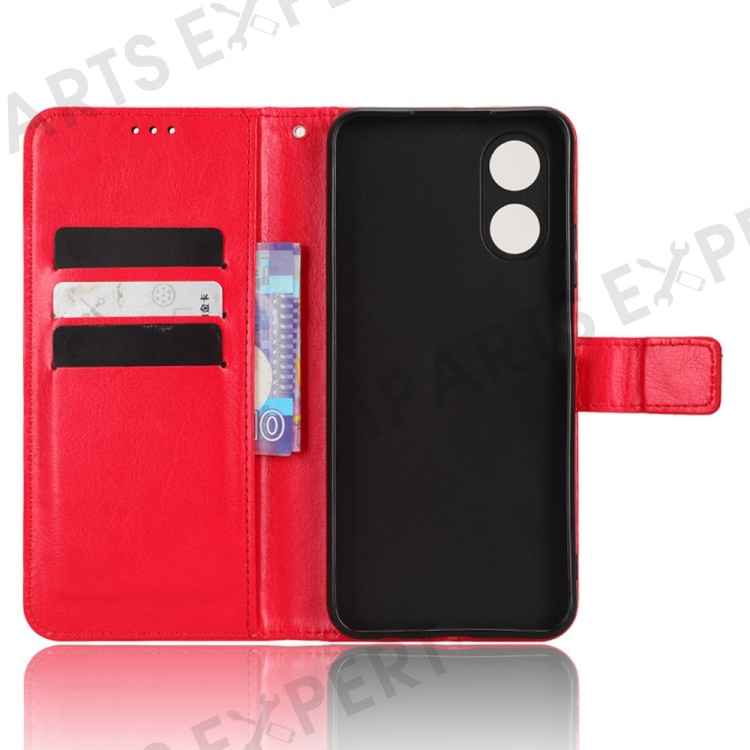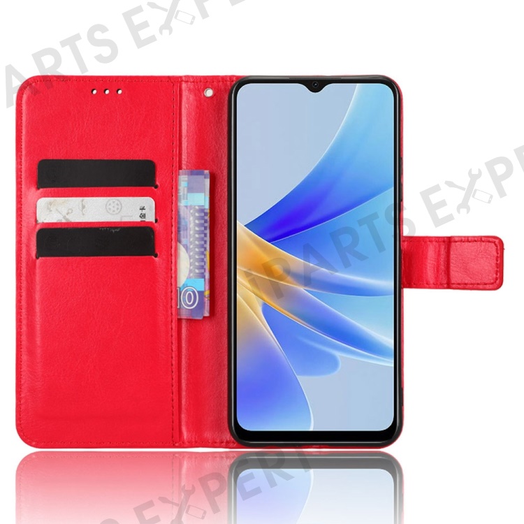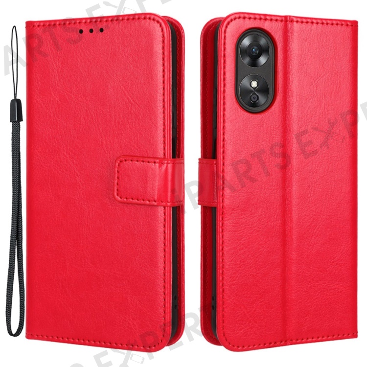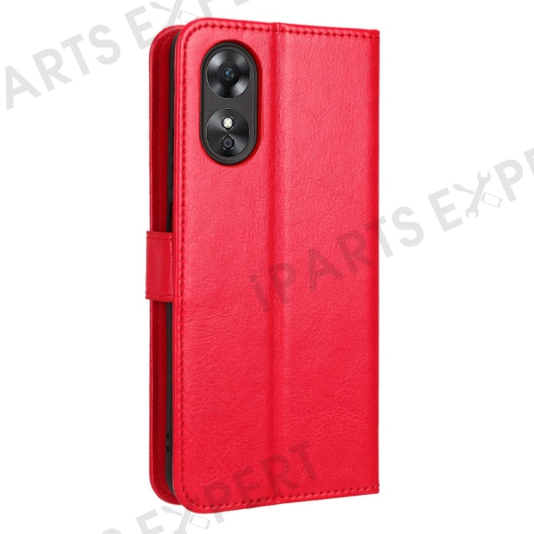 For Oppo A17 4G Crazy Horse Texture PU Leather Phone Case Full Protection Magnetic Clasp Cover with Stand Wallet - Red