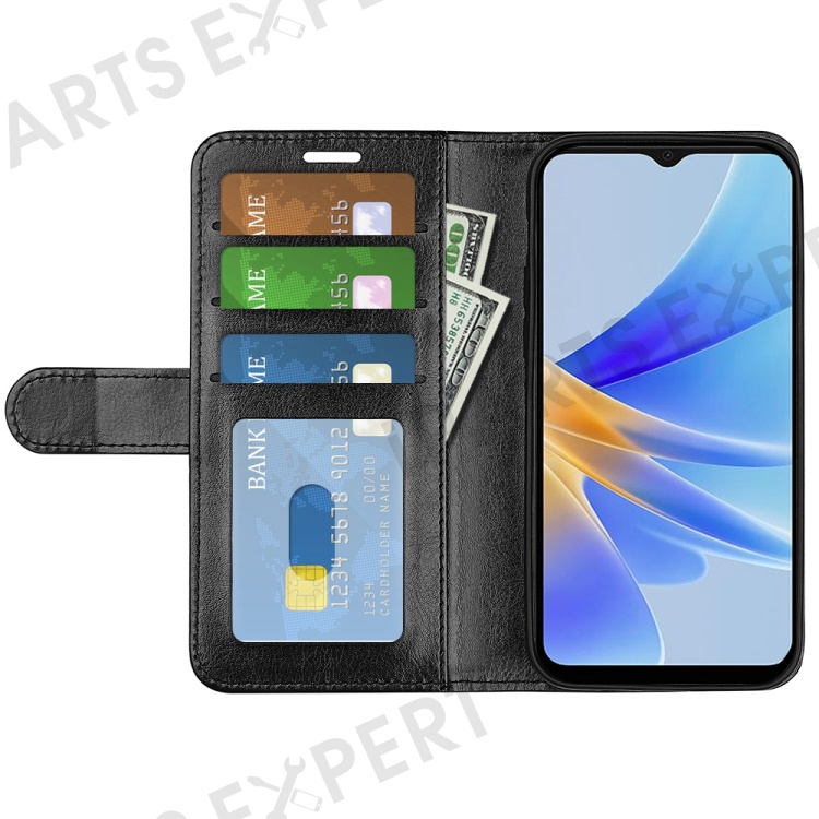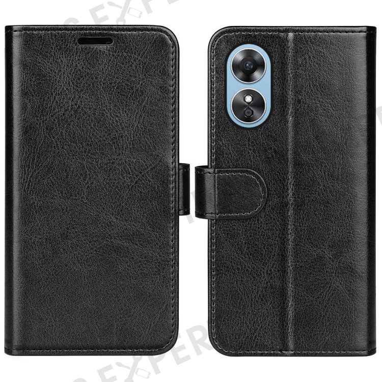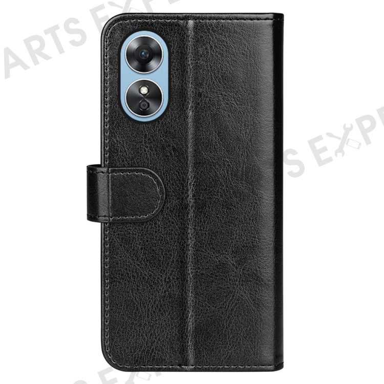 For Oppo A17 4G / A17k 4G PU Leather Coated TPU Phone Wallet Cover Anti-fingerprint Crazy Horse Texture Flip Stand Case - Black