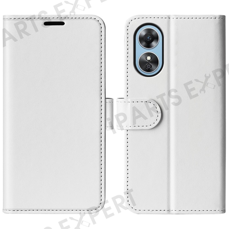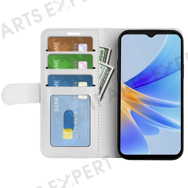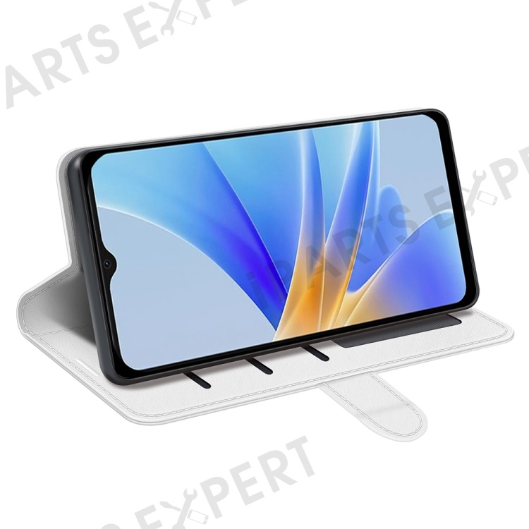 For Oppo A17 4G / A17k 4G PU Leather Coated TPU Phone Wallet Cover Anti-fingerprint Crazy Horse Texture Flip Stand Case - White