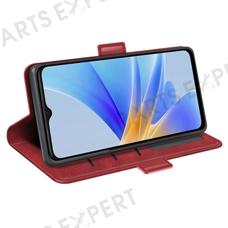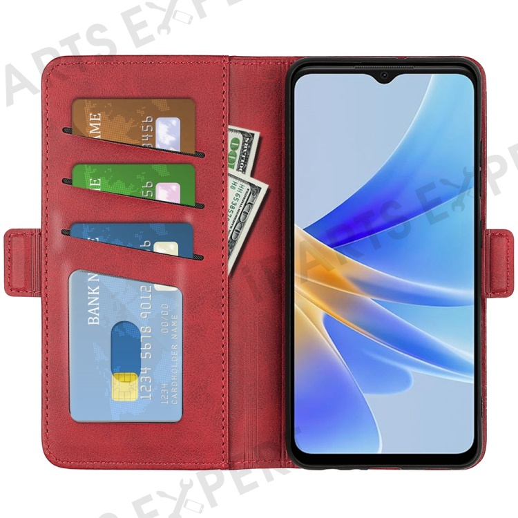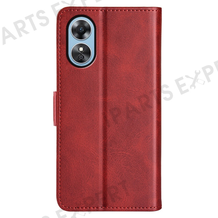 For Oppo A17 4G / A17k 4G PU Leather Dual Magnetic Clasp Calf Texture Stand Case Wallet Drop Protection Phone Cover - Red