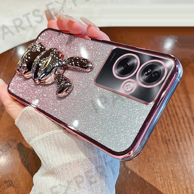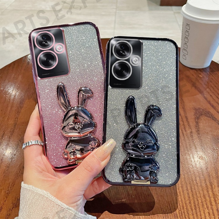 For Oppo A2 5G / A79 5G Cellphone Case Rabbit Design Electroplated PC+TPU Kickstand Cover - Pink