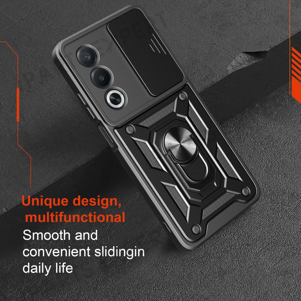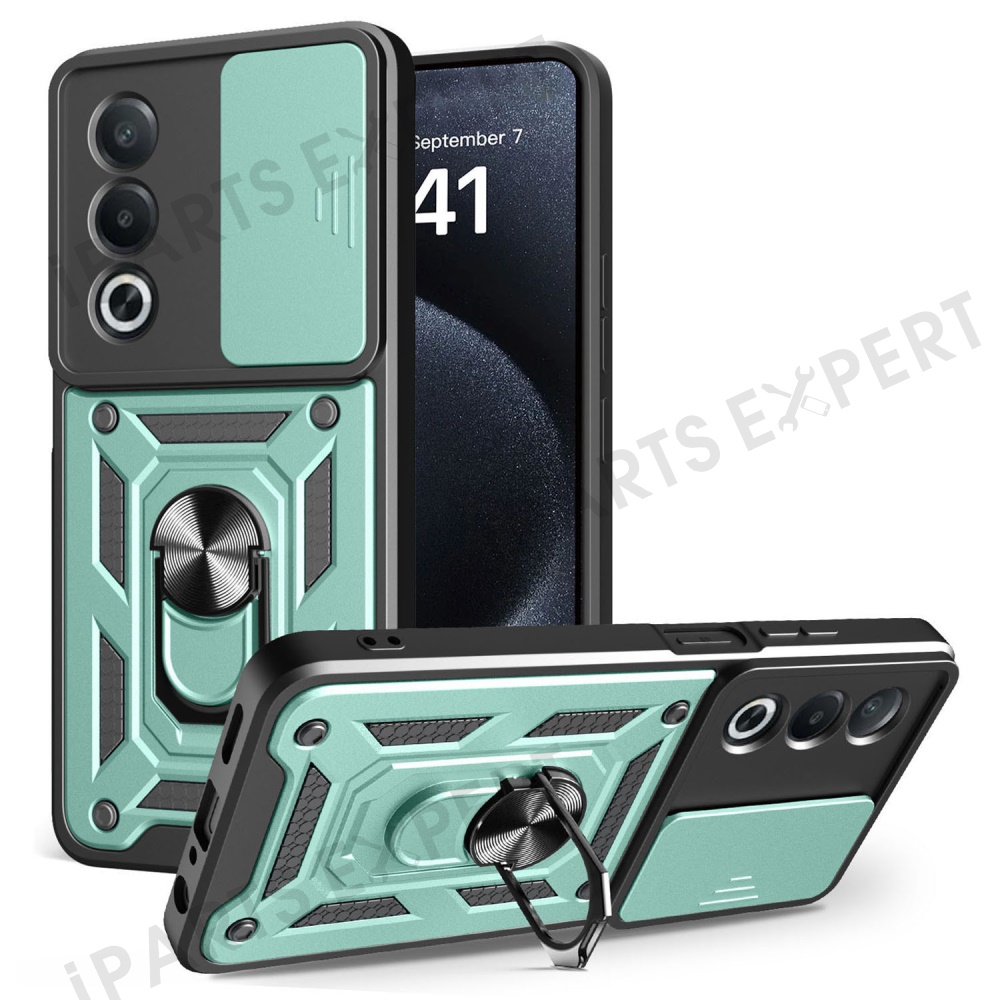 For Oppo A3 Pro (India) 5G / A80 5G Case with Slide Camera Lid PC + TPU Kickstand Phone Cover - Green