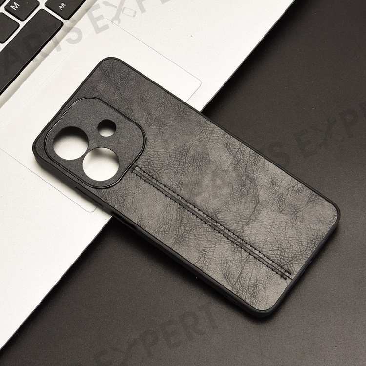For Oppo A3x 5G (India) Case Leather+TPU+PC Phone Cover Stitching Line - Black