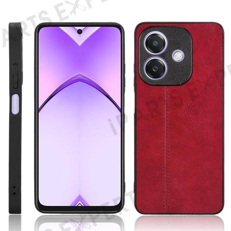 For Oppo A3x 5G (India) Case Leather+TPU+PC Phone Cover Stitching Line - Red