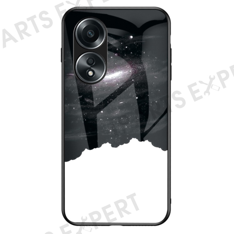 For Oppo A58 4G Case Starry Sky Pattern Back Protector Tempered Glass+PC+TPU Phone Cover - Cosmic Starry Sky