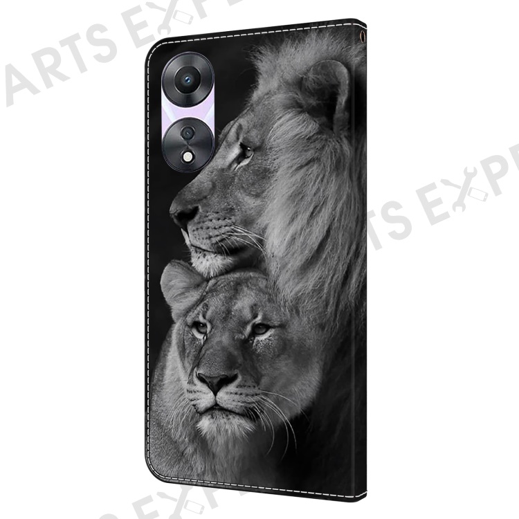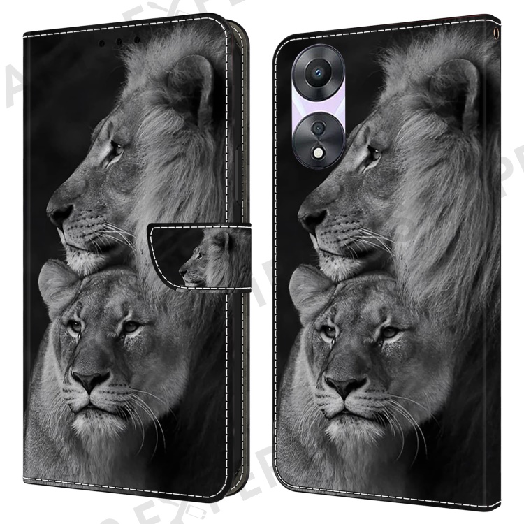 For Oppo A58 5G / A78 5G Phone Case 3D Pattern PU Leather Protective Flip Cover - Couple Lions