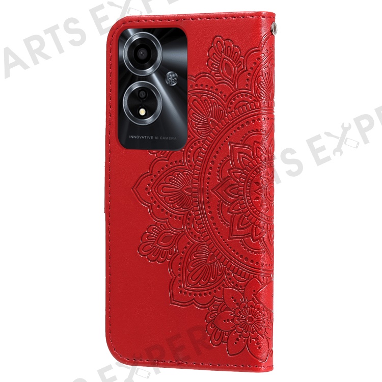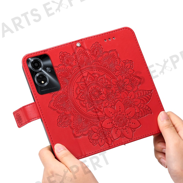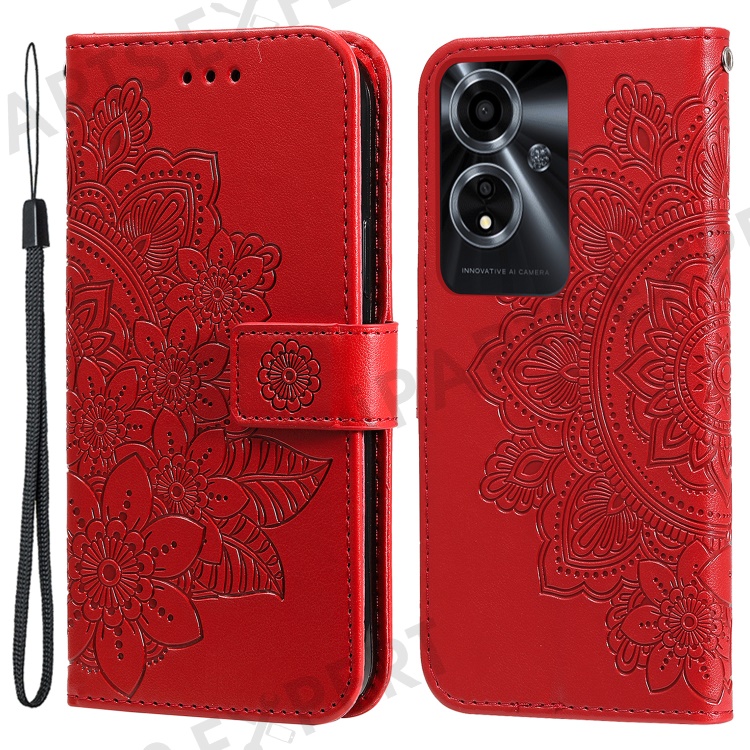 For Oppo A59 5G / A2m 5G Phone Case Flower Pattern Design Cover with Handy Strap - Red