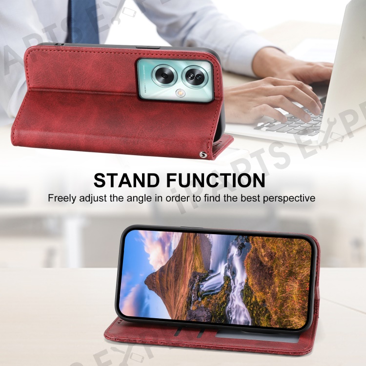 For Oppo A79 5G / A2 5G Case Calf Texture PU Leather+TPU Stand Phone Cover - Red