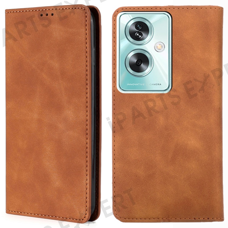 For Oppo A79 5G / A2 5G Leather Case Magnetic Auto Closing Phone Stand Cover - Light Brown