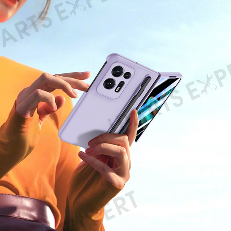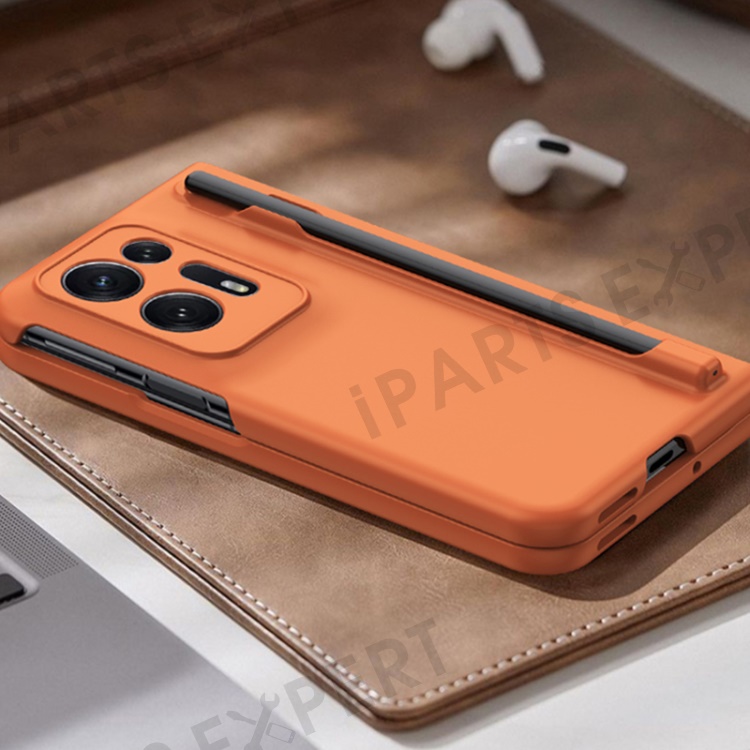 For Oppo Find N2 5G PC Phone Case Skin Touch Phone Cover with Tempered Glass Film / Stylus Pen - Orange