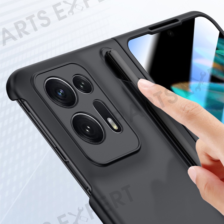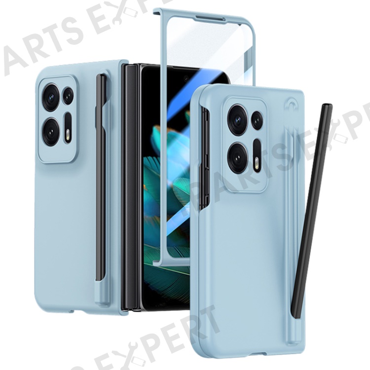 For Oppo Find N2 5G PC Phone Case Skin Touch Phone Cover with Tempered Glass Film / Stylus Pen - Sky Blue