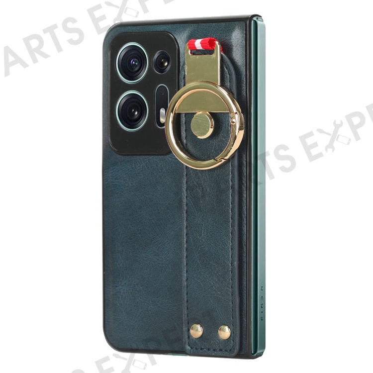 For Oppo Find N2 5G PU Leather Coated PC+TPU Phone Case Wristband Kickstand Shockproof Cover - Blue