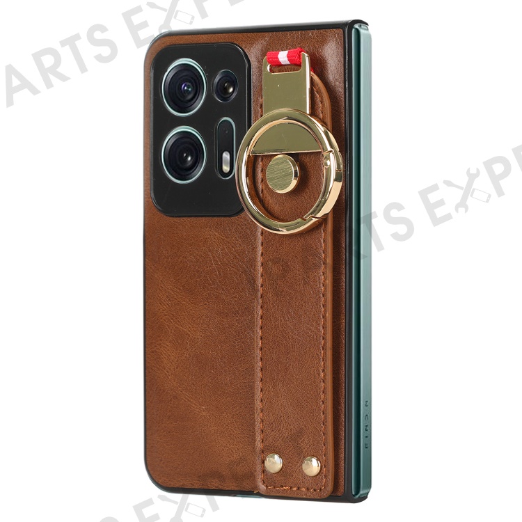 For Oppo Find N2 5G PU Leather Coated PC+TPU Phone Case Wristband Kickstand Shockproof Cover - Brown