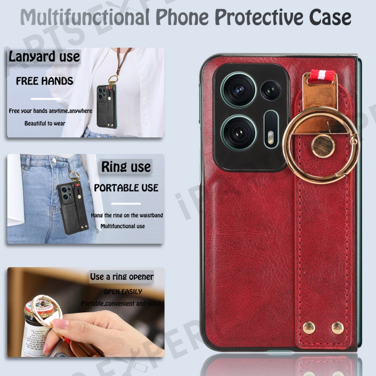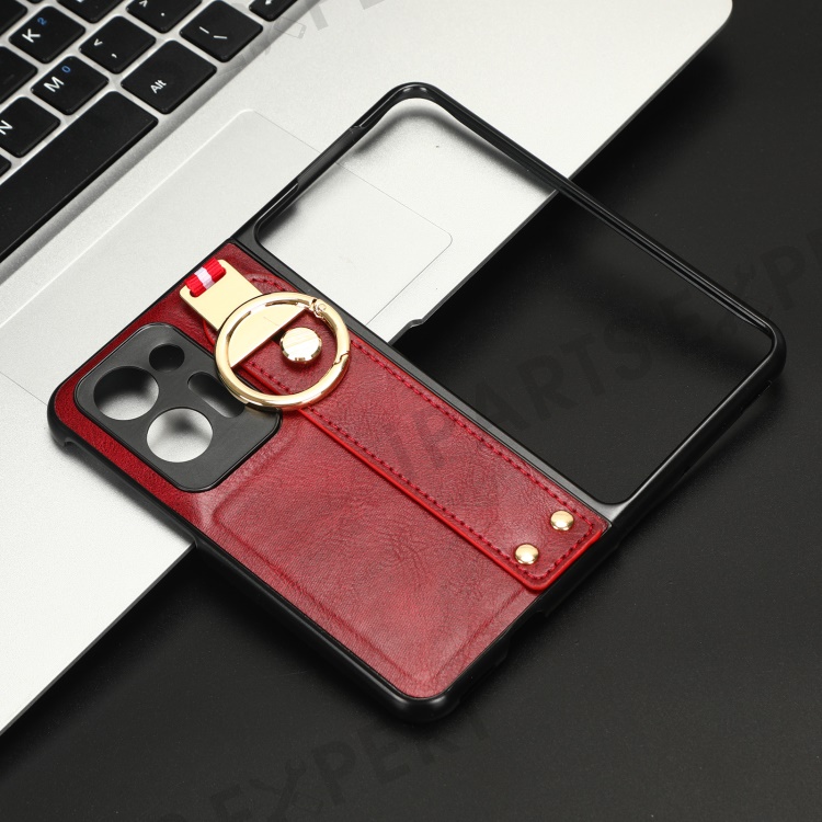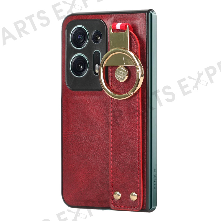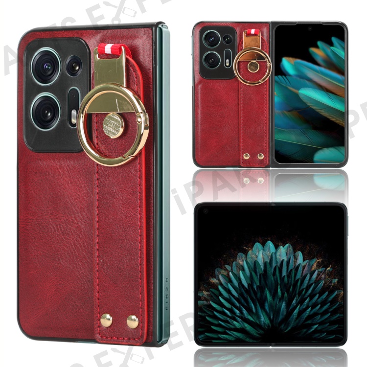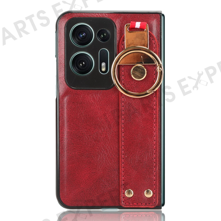 For Oppo Find N2 5G PU Leather Coated PC+TPU Phone Case Wristband Kickstand Shockproof Cover - Red