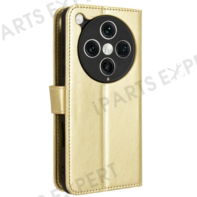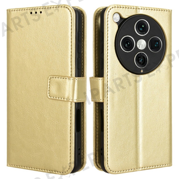 For Oppo Find X8 Pro 5G Case Crazy Horse Texture PU Leather Phone Wallet Cover - Gold