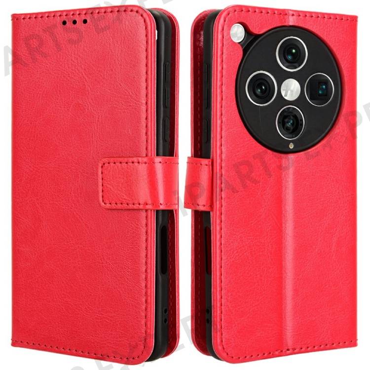 For Oppo Find X8 Pro 5G Case Crazy Horse Texture PU Leather Phone Wallet Cover - Red