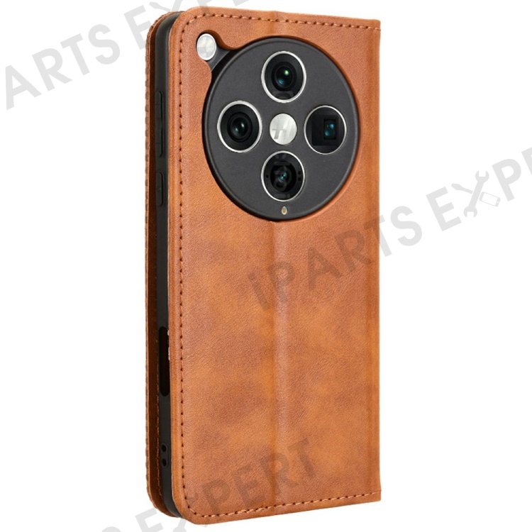For Oppo Find X8 Pro 5G Leather Case Wallet Stand Retro Texture Phone Cover - Brown