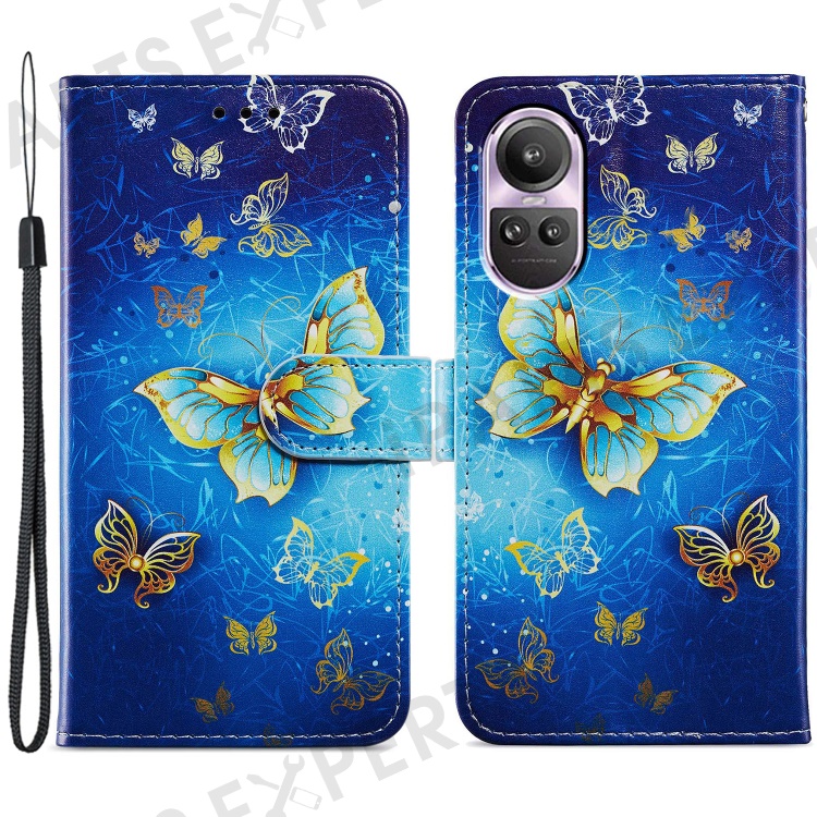 For Oppo Reno10 5G (Global) / Reno10 Pro 5G (Global) Case Folio Leather Wallet Pattern Phone Cover - Golden Butterfly