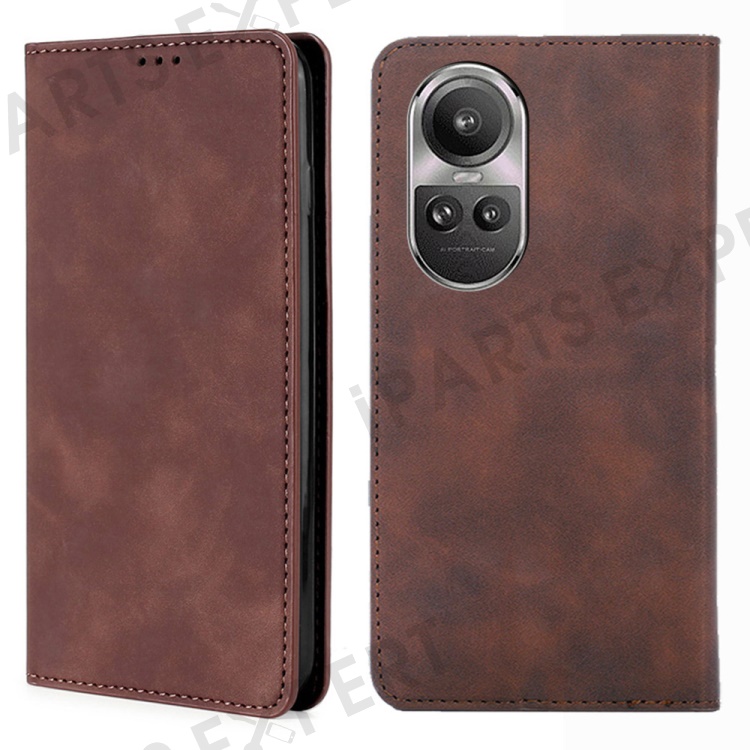 For Oppo Reno10 5G (Global) / Reno10 Pro 5G (Global) Case PU Leather+TPU Card Slots Stand Skin-touch Mobile Phone Cover - Dark Brown