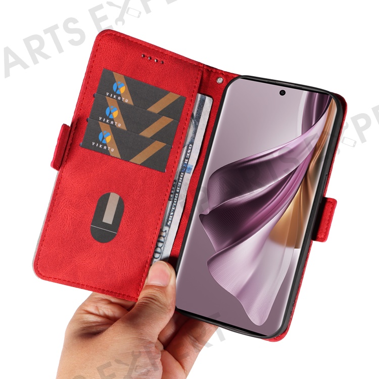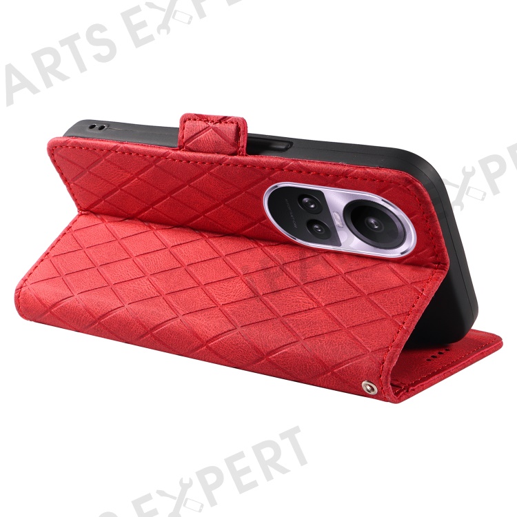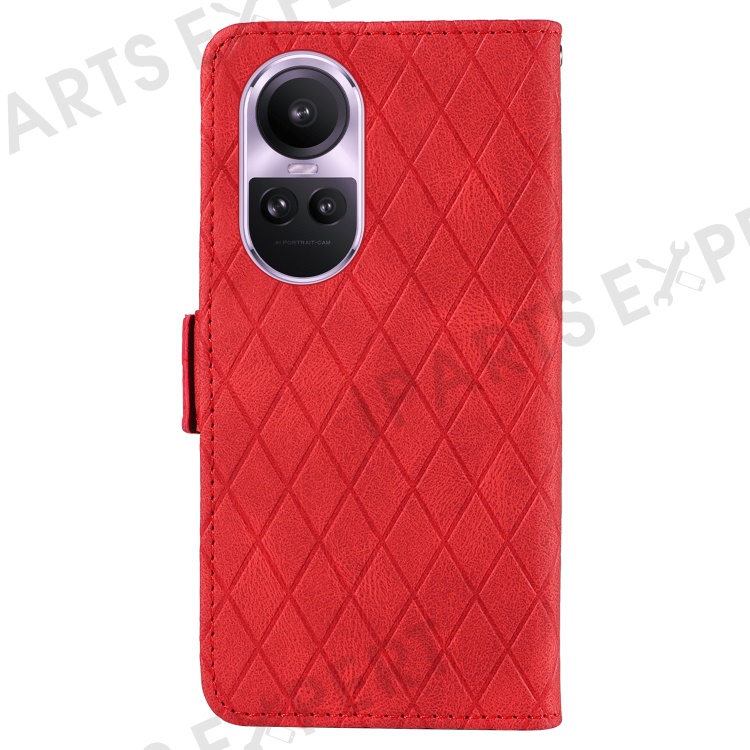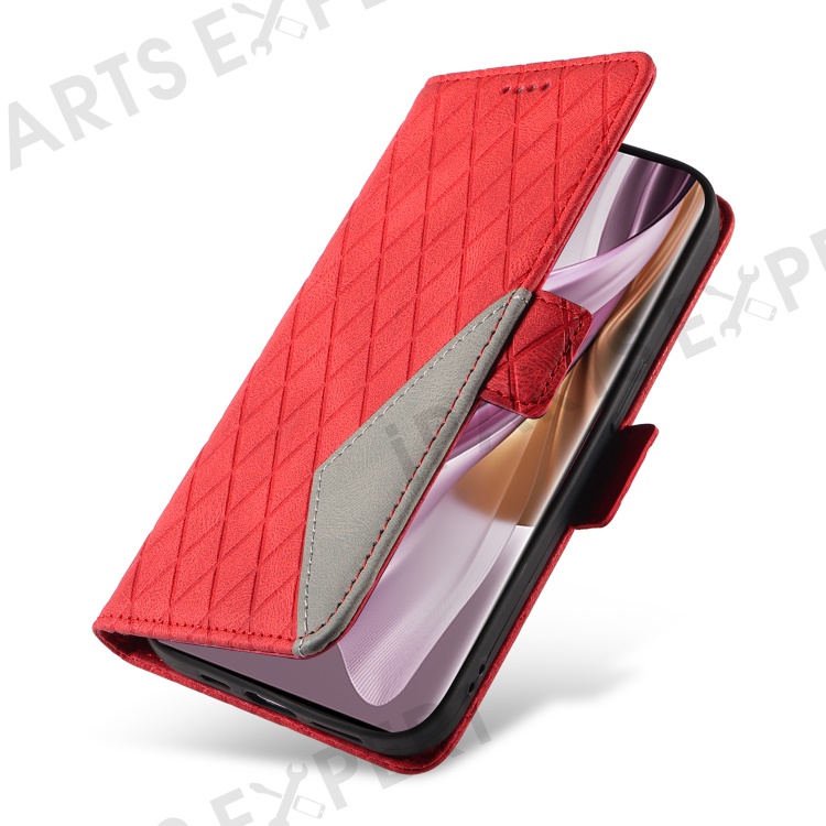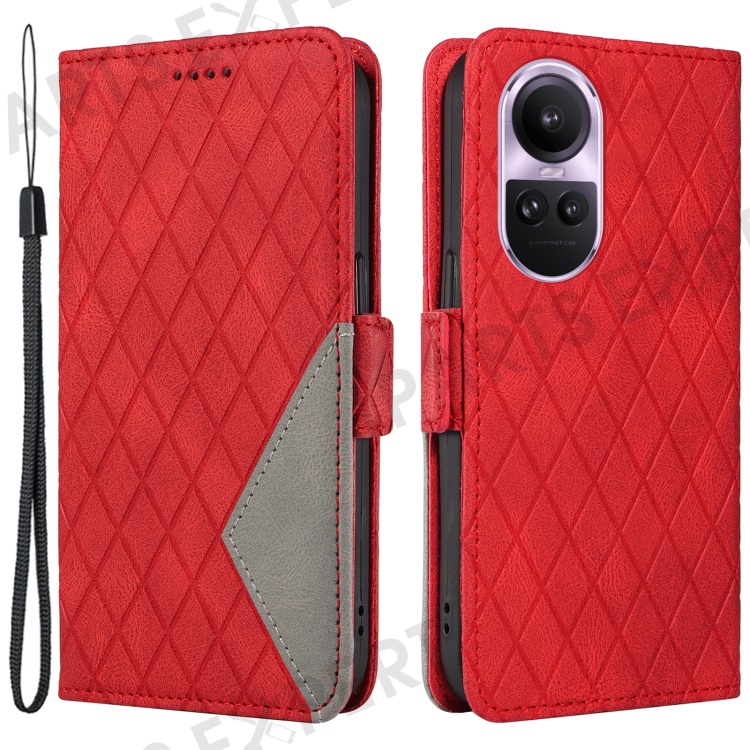 For Oppo Reno10 5G (Global) / Reno10 Pro 5G (Global) Splicing Wallet Phone Case Rhombus Imprinted Leather Stand Cover - Red