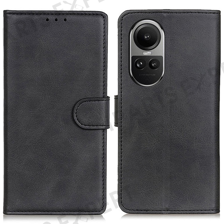 For Oppo Reno10 Pro 5G (Global) / Reno10 5G (Global) PU Leather Wallet Phone Case Cowhide Texture Stand Cover - Black