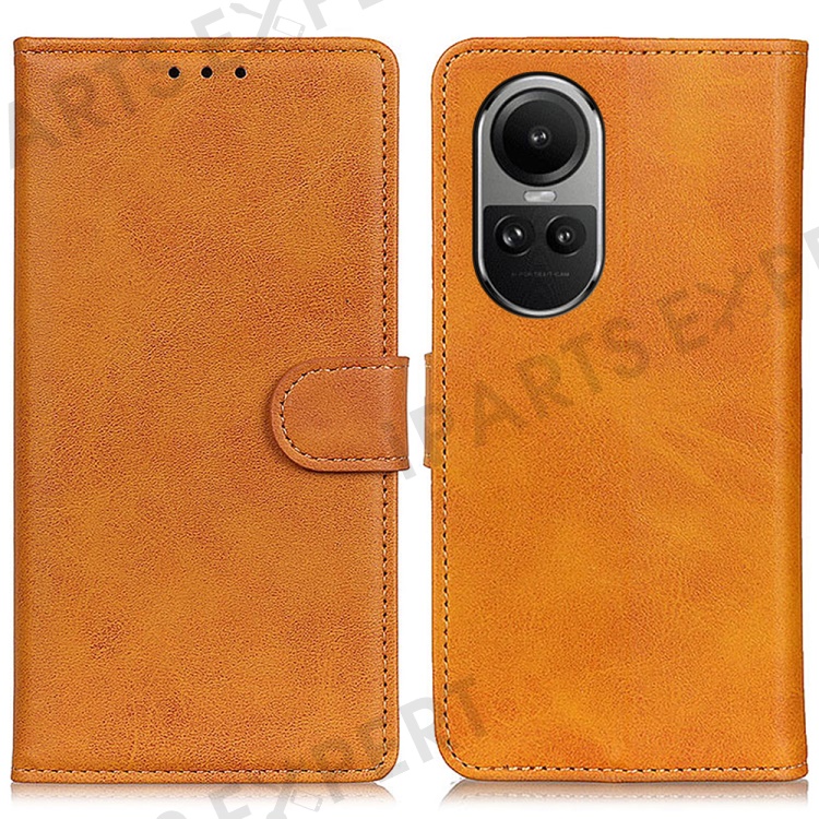 For Oppo Reno10 Pro 5G (Global) / Reno10 5G (Global) PU Leather Wallet Phone Case Cowhide Texture Stand Cover - Brown
