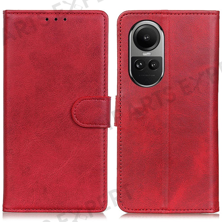 For Oppo Reno10 Pro 5G (Global) / Reno10 5G (Global) PU Leather Wallet Phone Case Cowhide Texture Stand Cover - Red