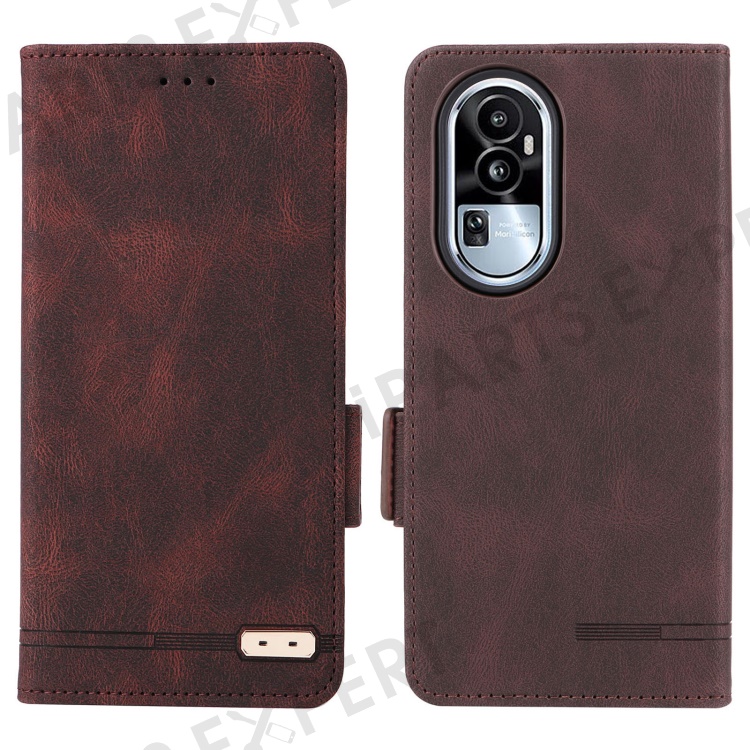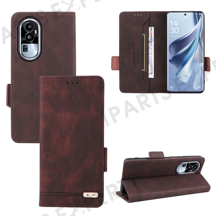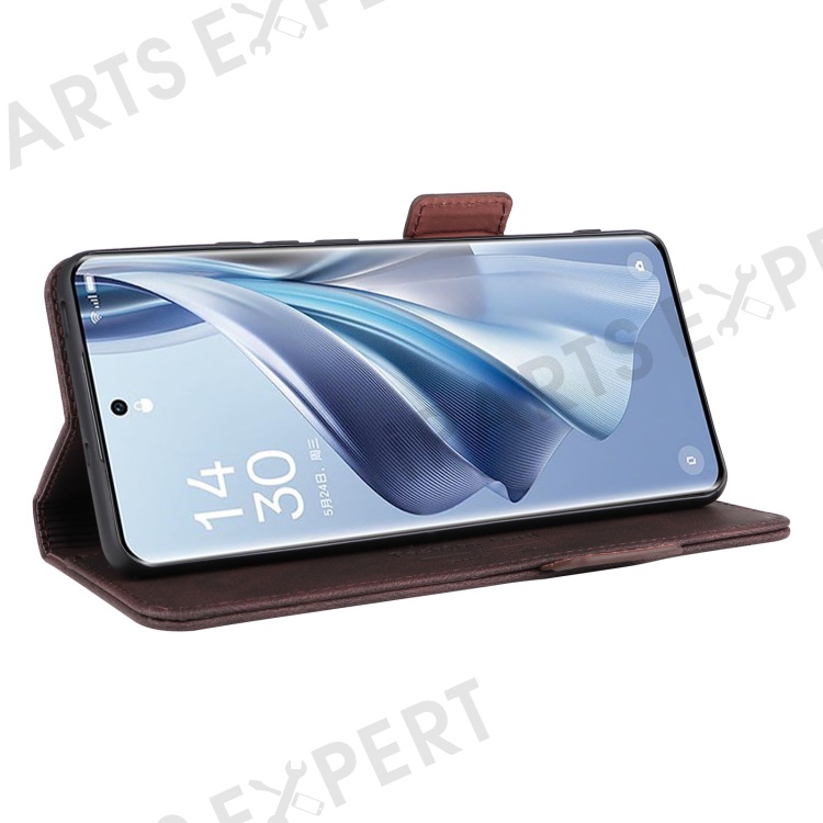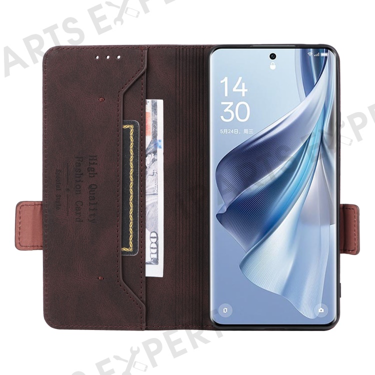 For Oppo Reno10 Pro 5G (Global) Hardware Decor Phone Case PU Leather Wallet Stand Cover - Coffee