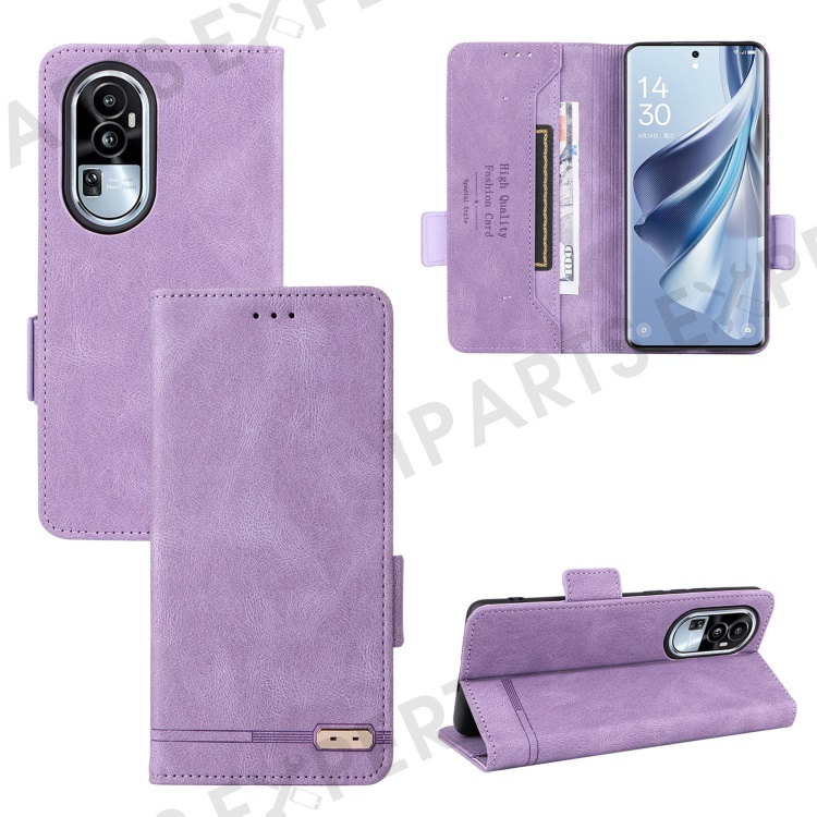 For Oppo Reno10 Pro 5G (Global) Hardware Decor Phone Case PU Leather Wallet Stand Cover - Purple