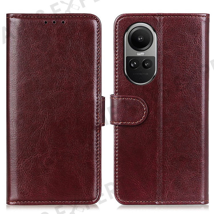 For Oppo Reno10 Pro 5G (Global) / Reno10 5G (Global) Stand Crazy Horse Texture Cover Wallet PU Leather Cell Phone Case - Brown