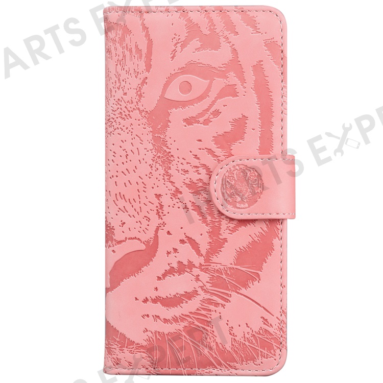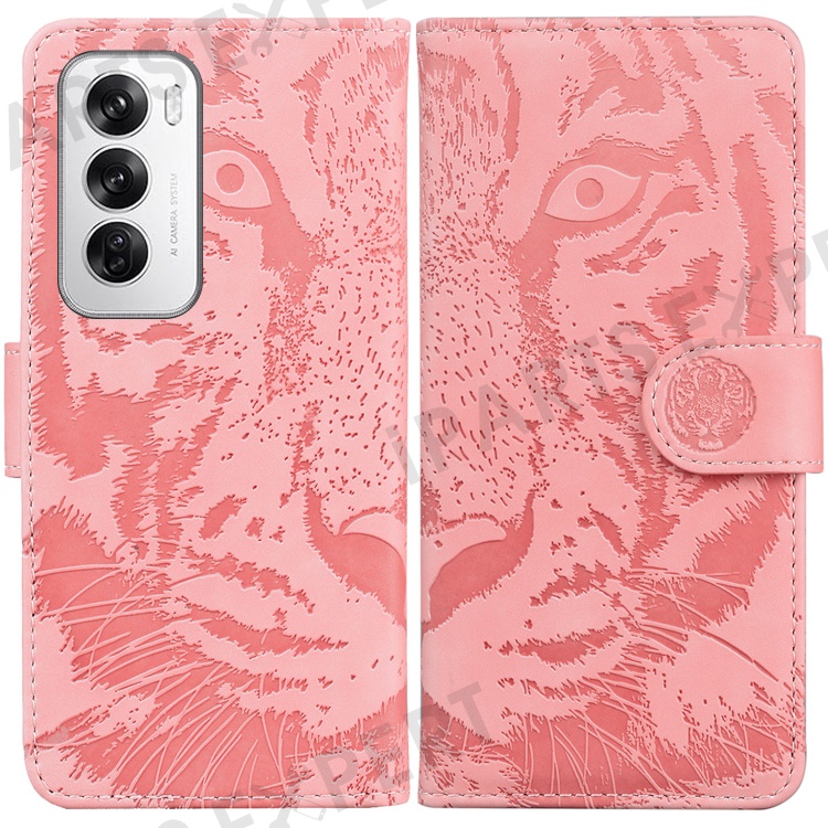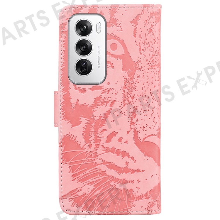 For Oppo Reno12 5G (Global) Wallet Phone Case Tiger Imprint Leather Flip Cover - Pink