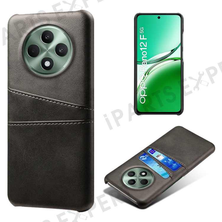 For Oppo Reno12 F 5G Case Dual Card Slots PU Leather + Hard PC Phone Cover - Black